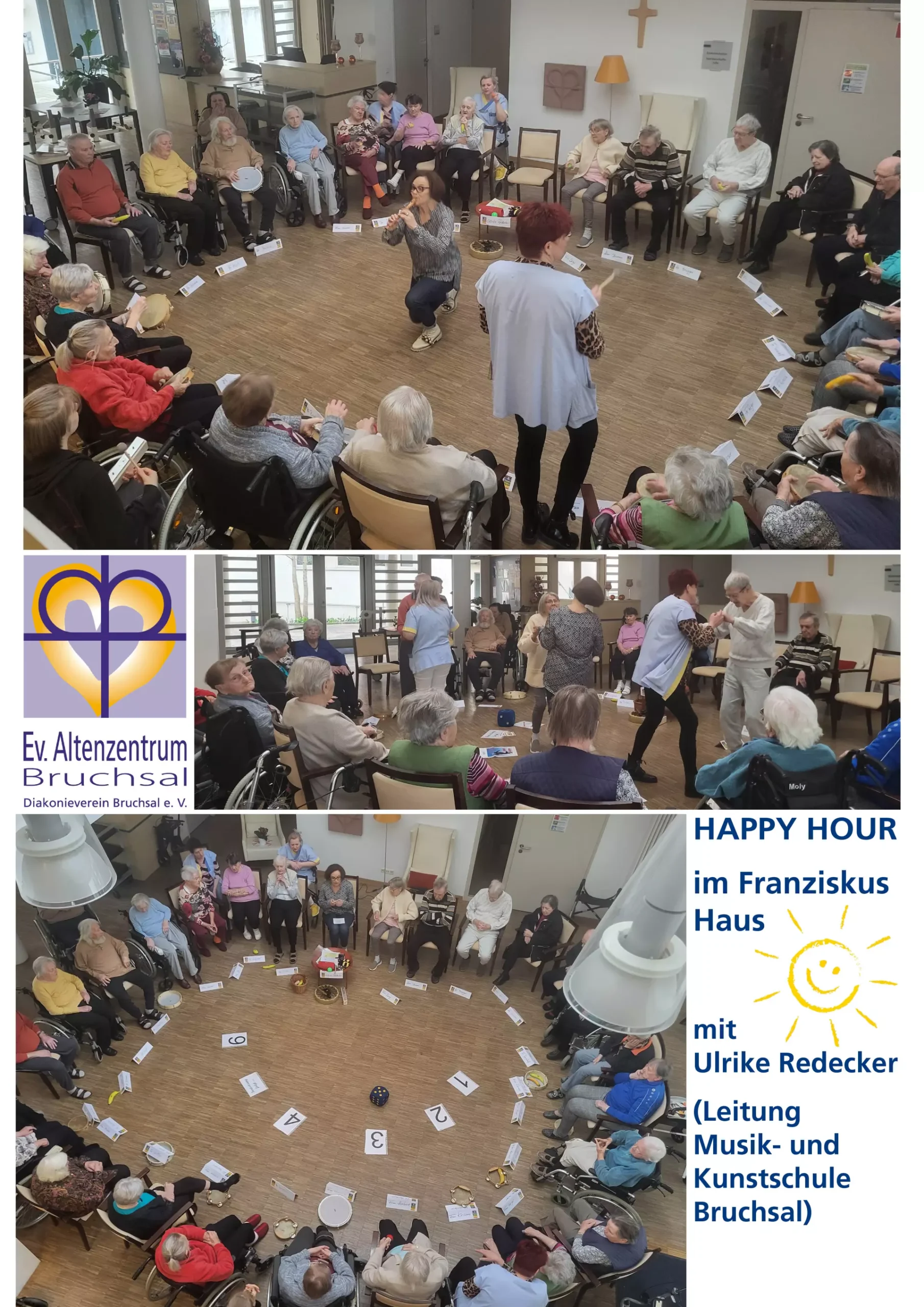 Zur Stunde voller Musik und Freude lädt Ulrike Redecker (Leitung Musik- und Kunstschule Bruchsal) unsere Bewohner*innen jeden Donnerstagvormittag im Foyer Franziskus Haus ein. Gute Laune zum Hören, Fühlen, Genießen & Mitmachen… Musikgeragogik lebendig, innovativ und mit großartigem Engagement. Ein Angebot mit Vorbildcharakter!