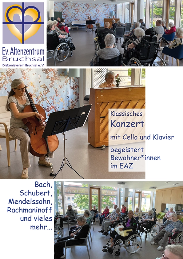 „Eine große Freude bereiteten zwei Musiker unseren Bewohnerinnen und Bewohnern im Luise Rinser Haus. Mit Cello und Klavier begeisterten die engagierten Musiker ihre Zuhörenden und gestalteten ein beeindruckendes Konzert. Herzlichen Dank!“