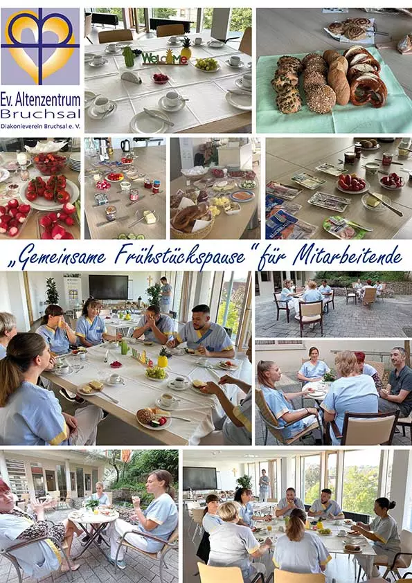 Die Mitarbeitendenvertretung (MAV) lädt Mitarbeitende der verschiedenen Häuser in regelmäßigen Abständen zu einer gemeinsamen Frühstückspause ein. Mit gesunden Lebensmitteln und in geselliger Runde können Mitarbeitende in den Austausch kommen und ihre Auszeit bewusst genießen. Pausen einhalten und erholend gestalten, vielseitige Ernährung und ein gutes Miteinander sind wichtige Bausteine für einen gesunden Berufsalltag.